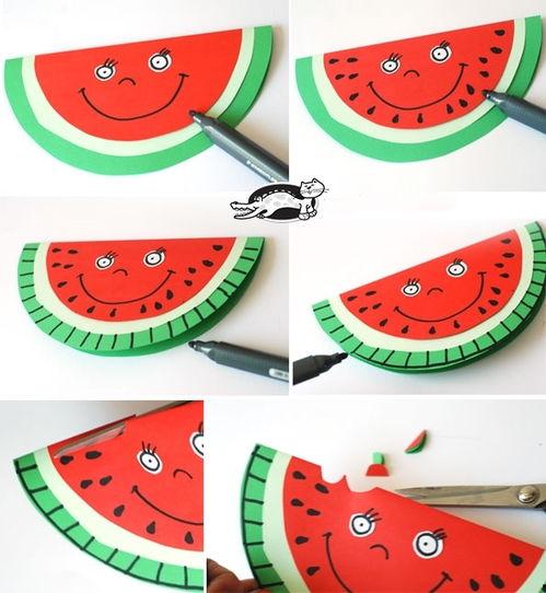3. 装饰点缀:折叠完成后,用彩笔在瓜壳上画出瓜纹,让这个纸艺作品更加生动有趣。